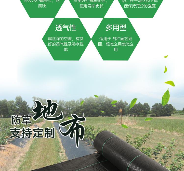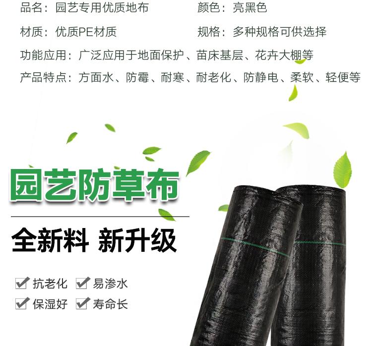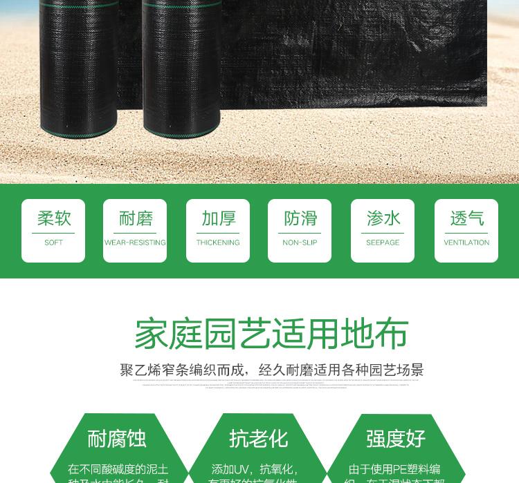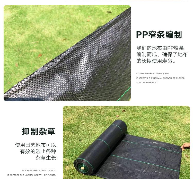 園藝地布又稱“防草布’ 、除草布’是由抗紫外線的pp扁絲編織而成。標準幅寬:0.5-6米,特殊規格可訂做. 長度:100-1000米每卷,特殊長度可定做。