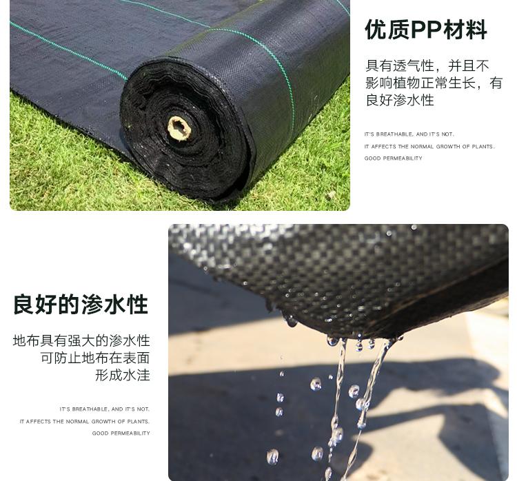 1、防止地面產生雜草。由于地布可以阻止陽光對地面的直接照射(特別是黑色地布),同時利用地布本身堅固的結構阻止雜草穿過地布,從而保證了地布對雜草生長的抑制作用。